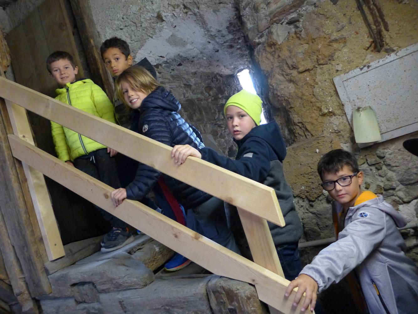 Die Kinder waren etwas nervös, sie wollten beim Zwölfuhrläuten nicht mehr in der Nähe der Glocken sein. Darum schnell, aber vorsichtig die Stufen wieder runter!