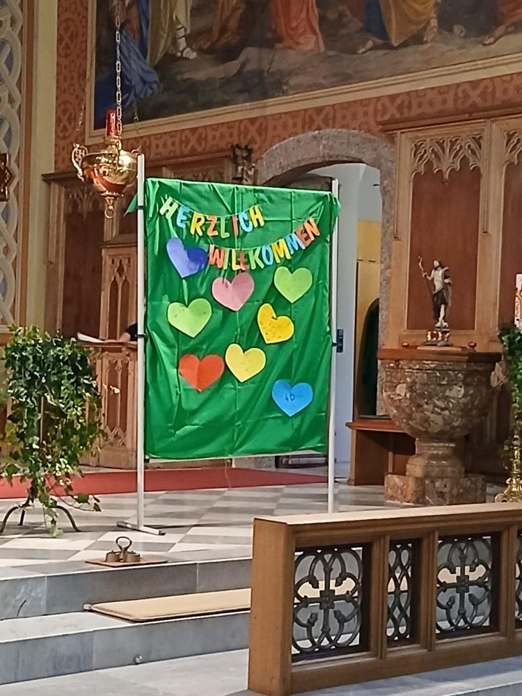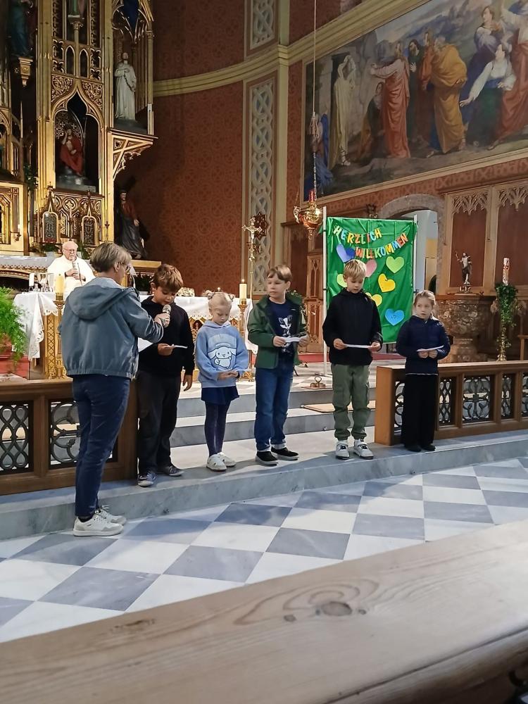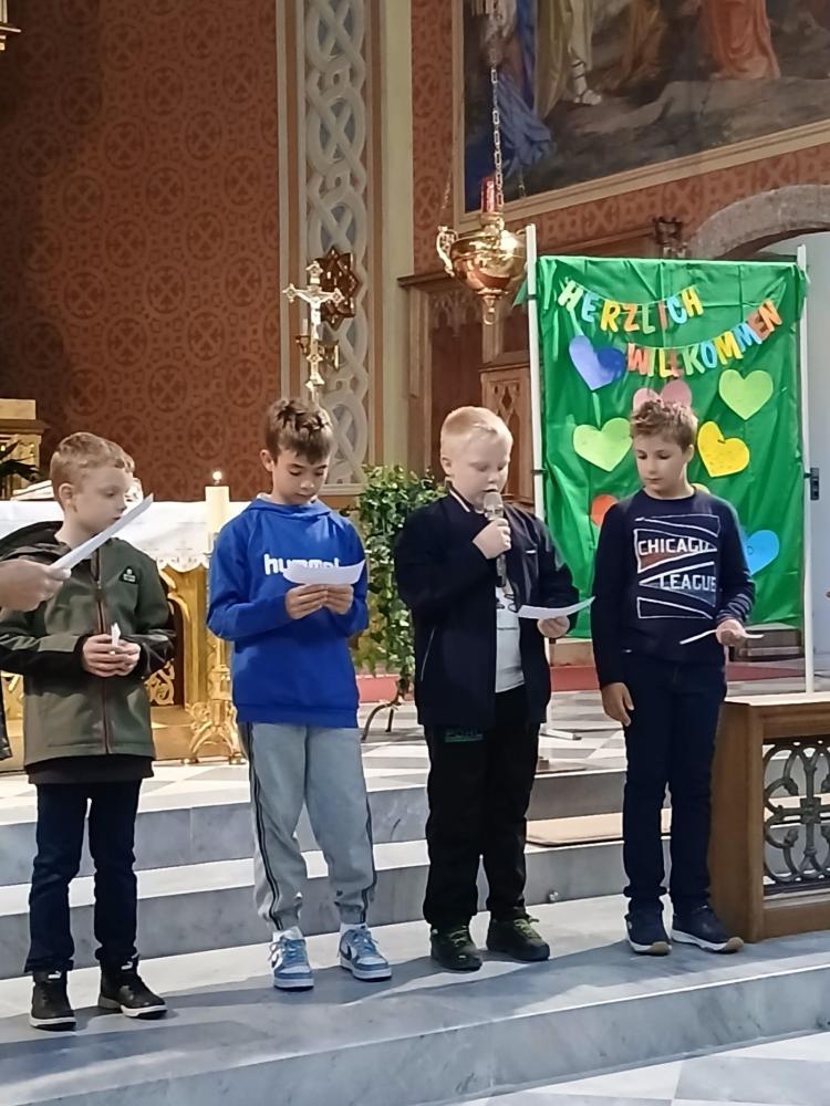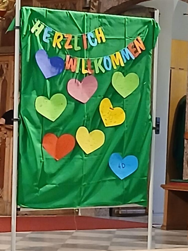 Unter dem Motto: „Herzlich Willkommen“ feierte am Mittwoch, den 24. September Pfarrer Henryk mit uns einen Gottesdienst zu Beginn des neuen Schuljahres. Dazu konnten wir alle Schüler und Schülerinnen der 3. und 4. Klassen unserer beiden Volksschulen mit ihren Lehrpersonen und Assistentinnen begrüßen.