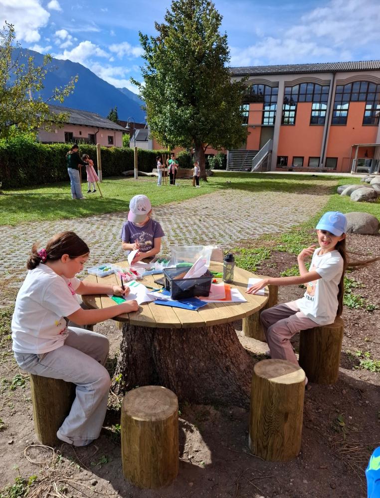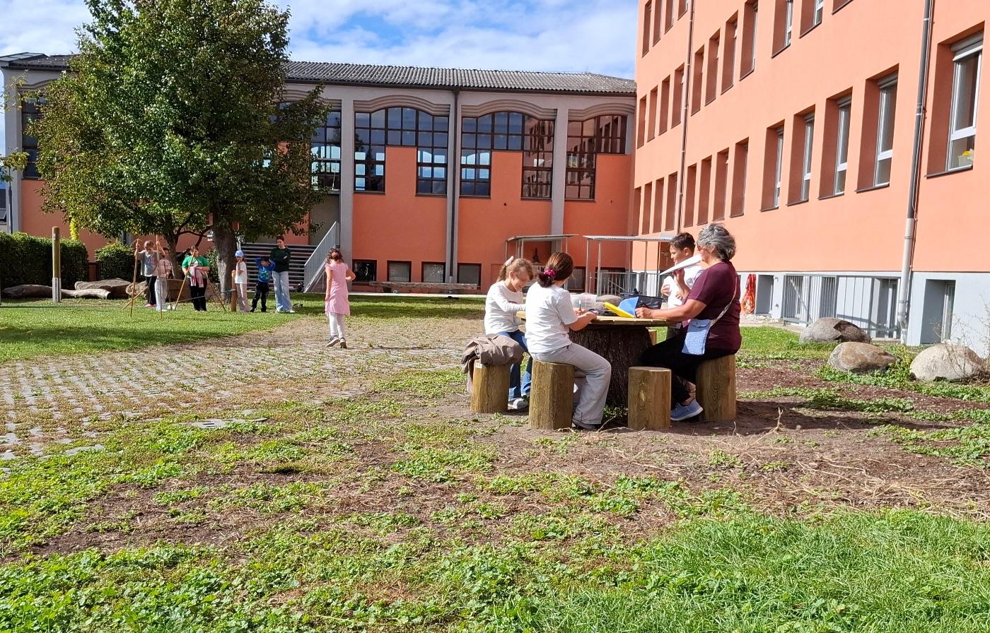 Im Schulgarten von Romed Suda 13. Oktober 2025 stb Auch im Schulgarten können wir nun zusammensitzen, Brettspiele spielen oder Malen und Basteln!