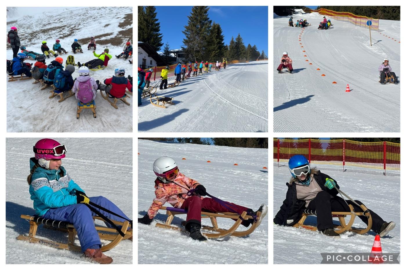 Zu Beginn wurde am Übungshang das Bremsen und Lenken ausführlich geübt. Dann durfte das Gelernte auf der Rodelbahn ausprobiert werden.