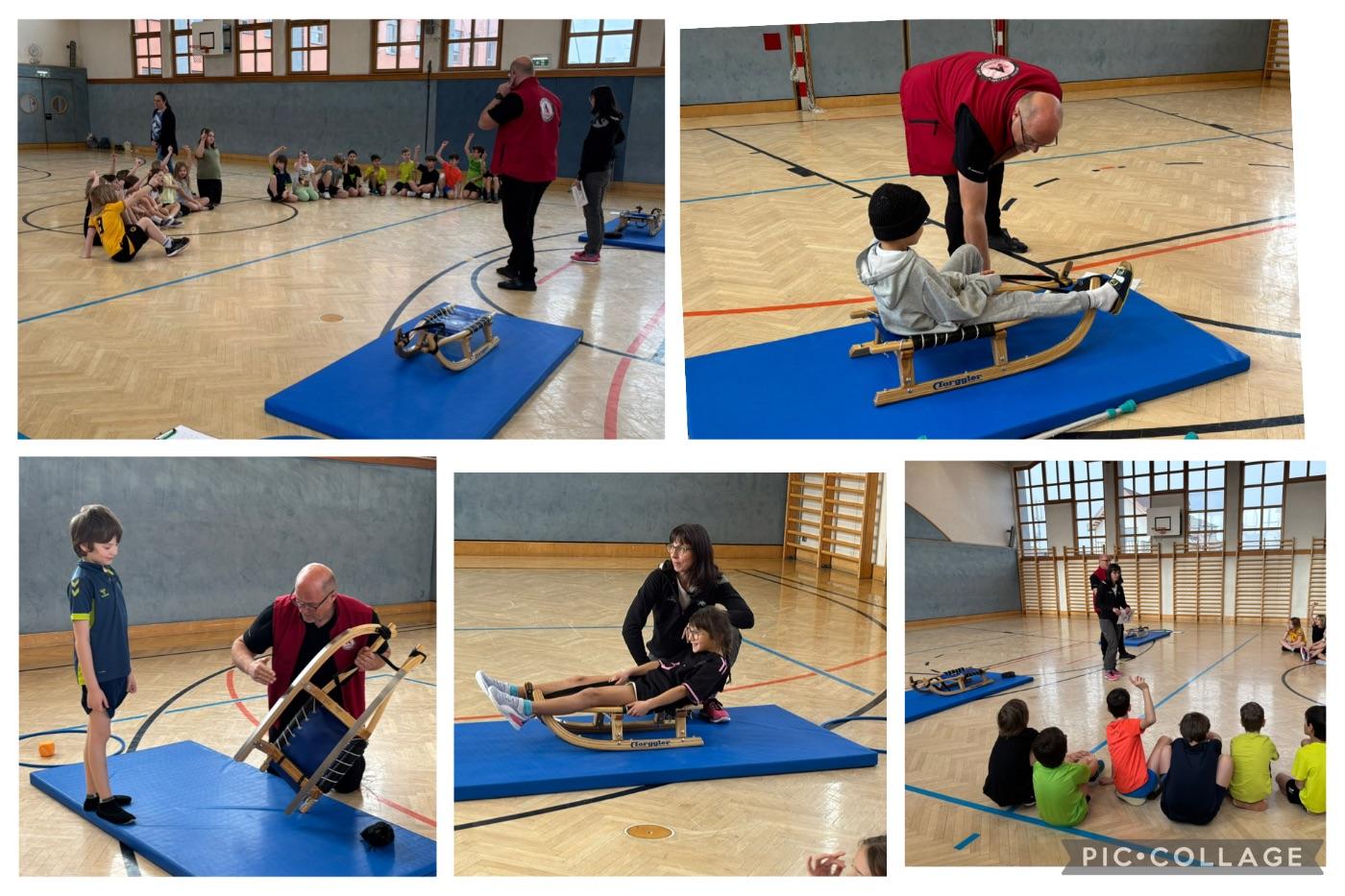 Bevor wir auf die Rodelbahn gingen, gab es am Montag ein Trockentraining im Turnsaal.