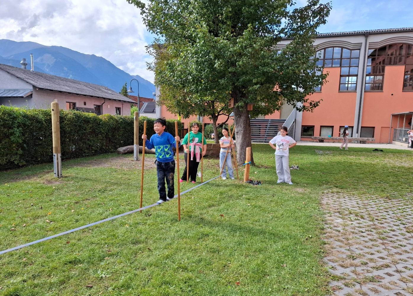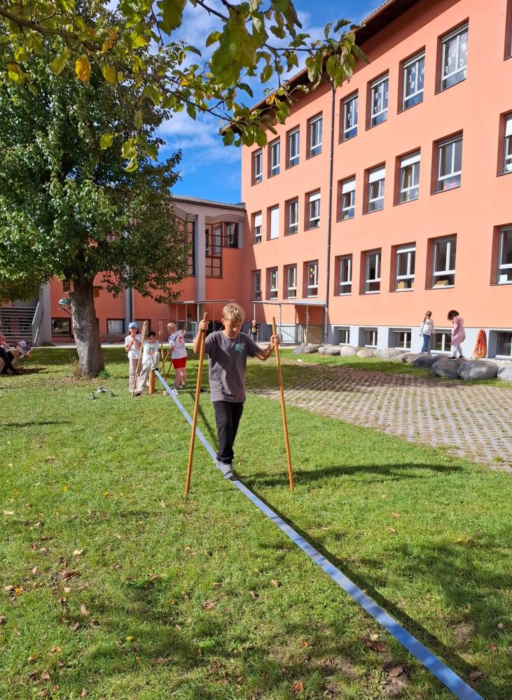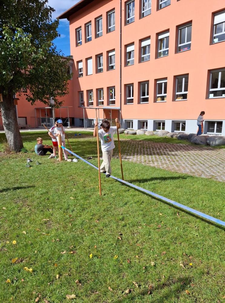 Slackline im Schulgarten von Romed Suda 13. Oktober 2025 stb news Die Slackline im Schulgarten muss erst geübt werden!