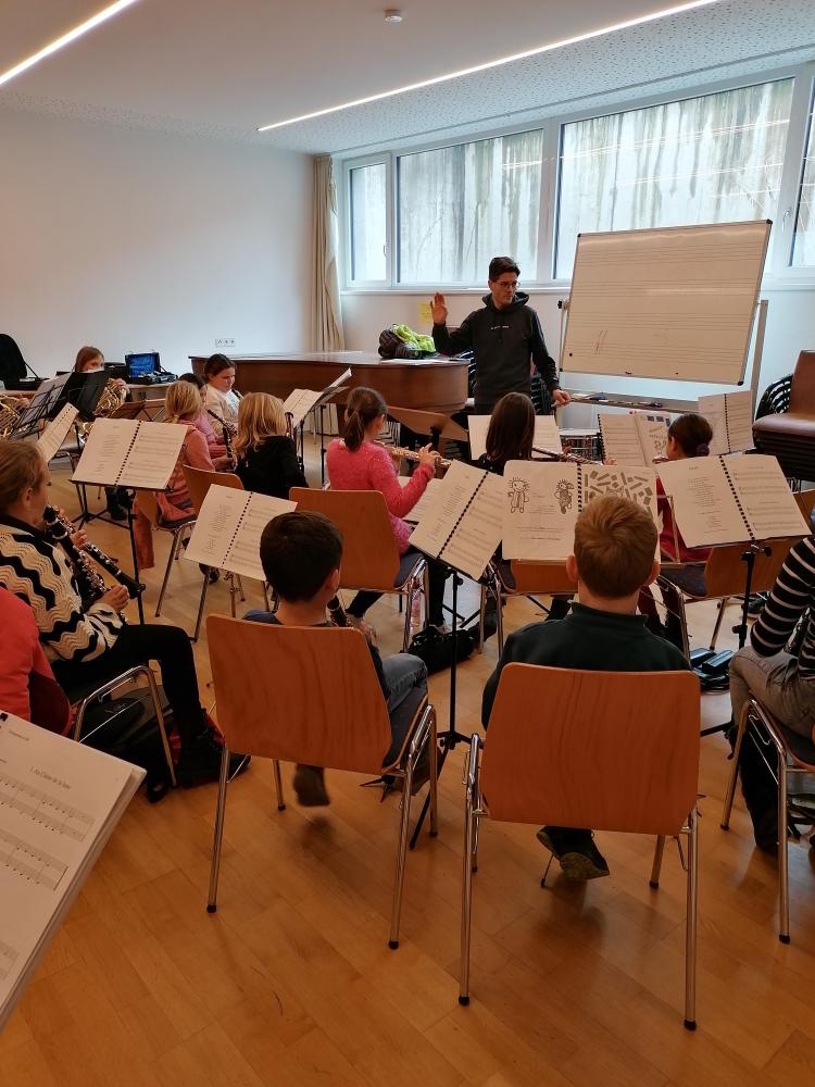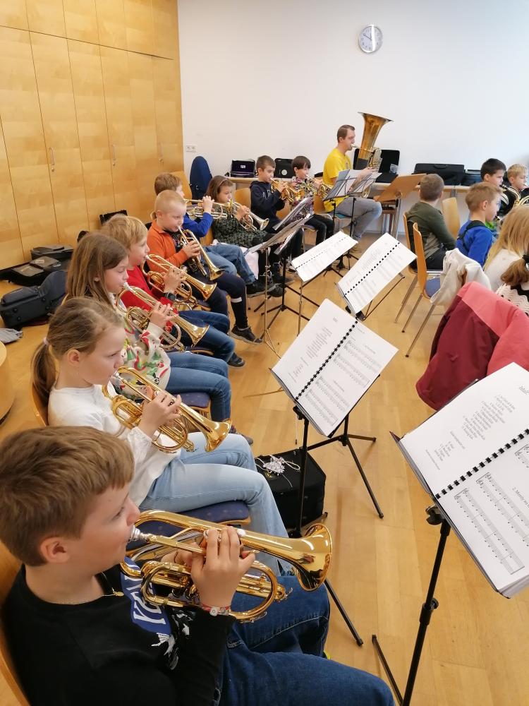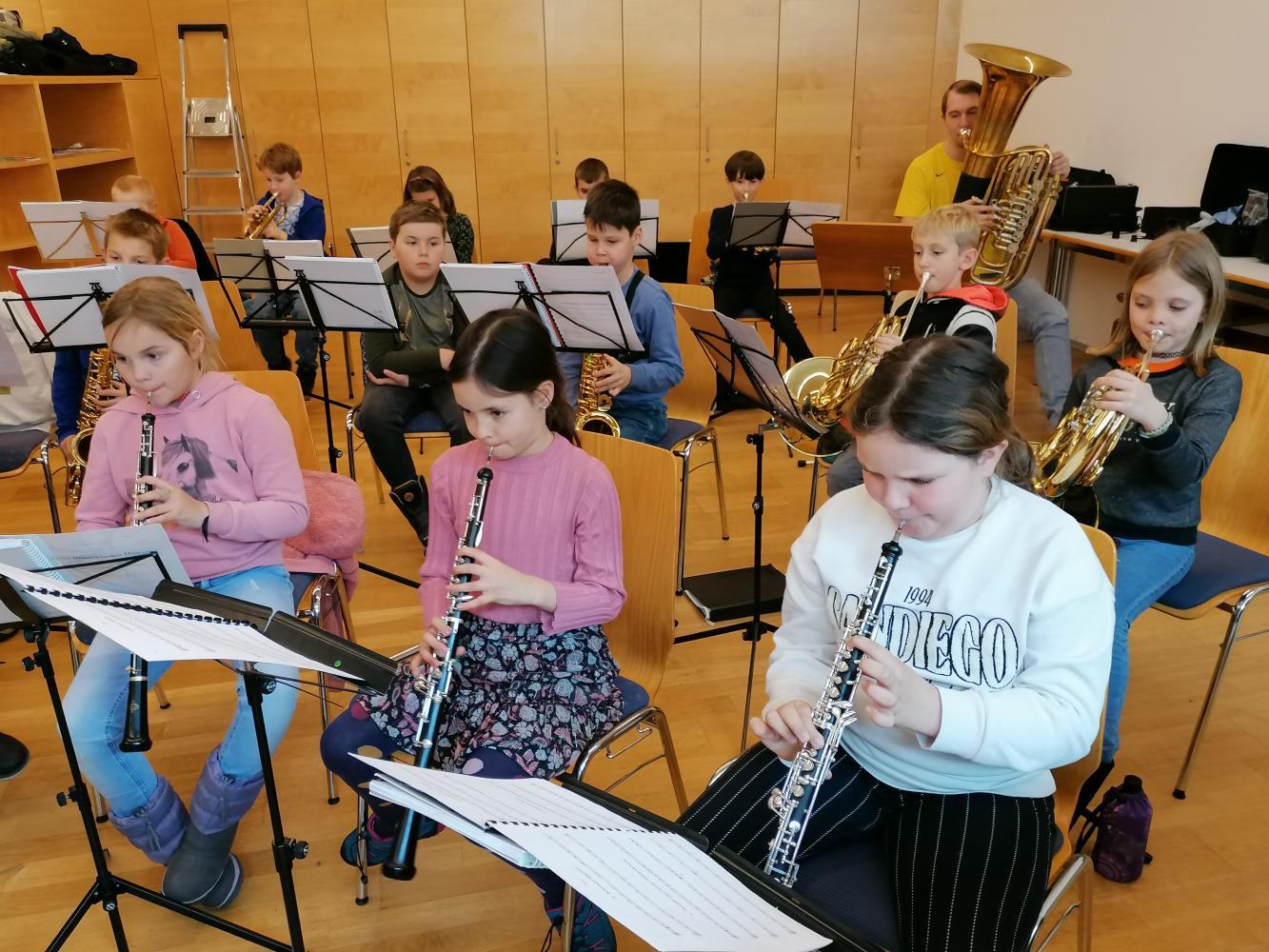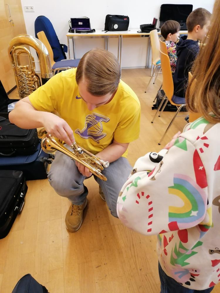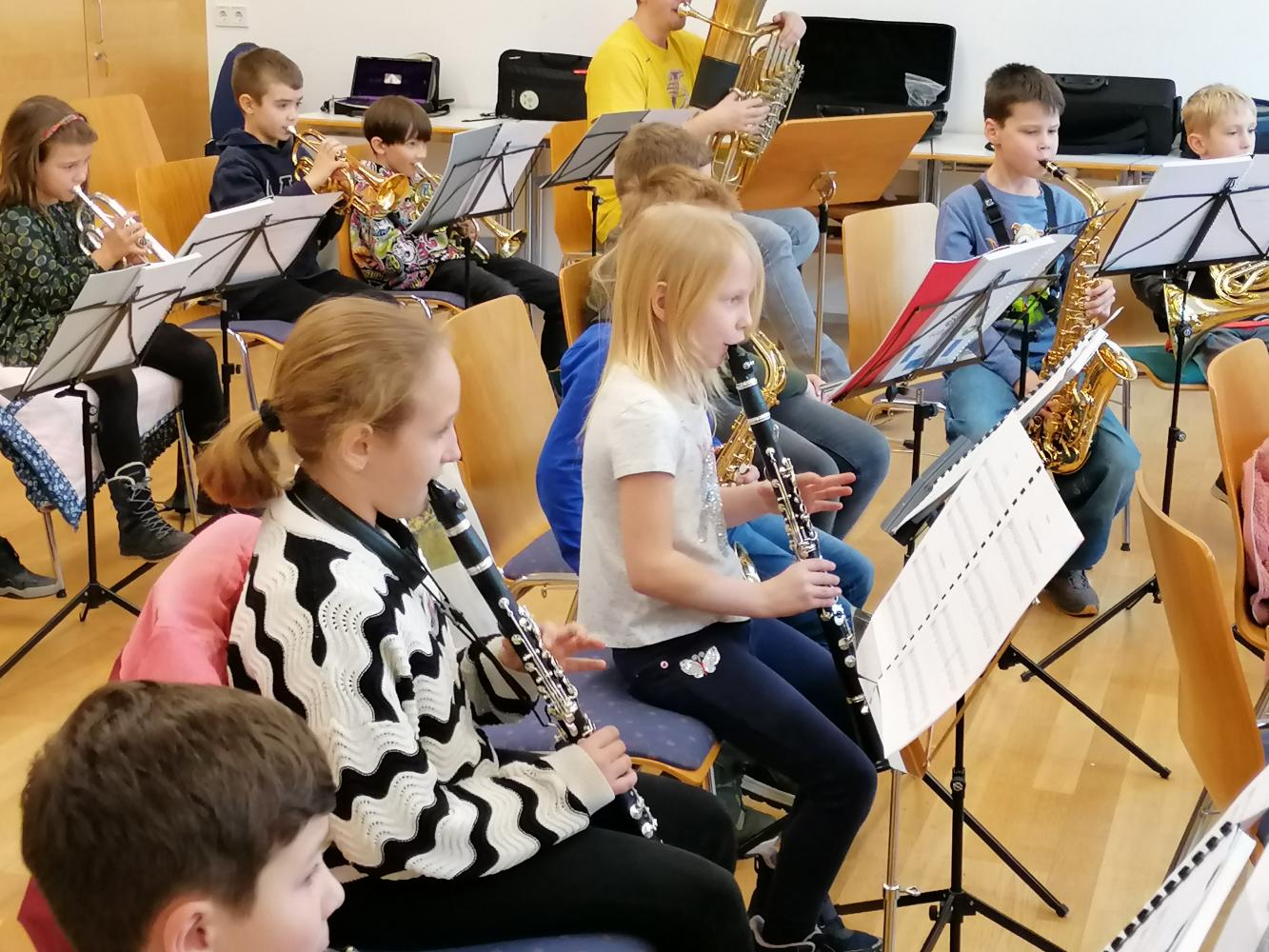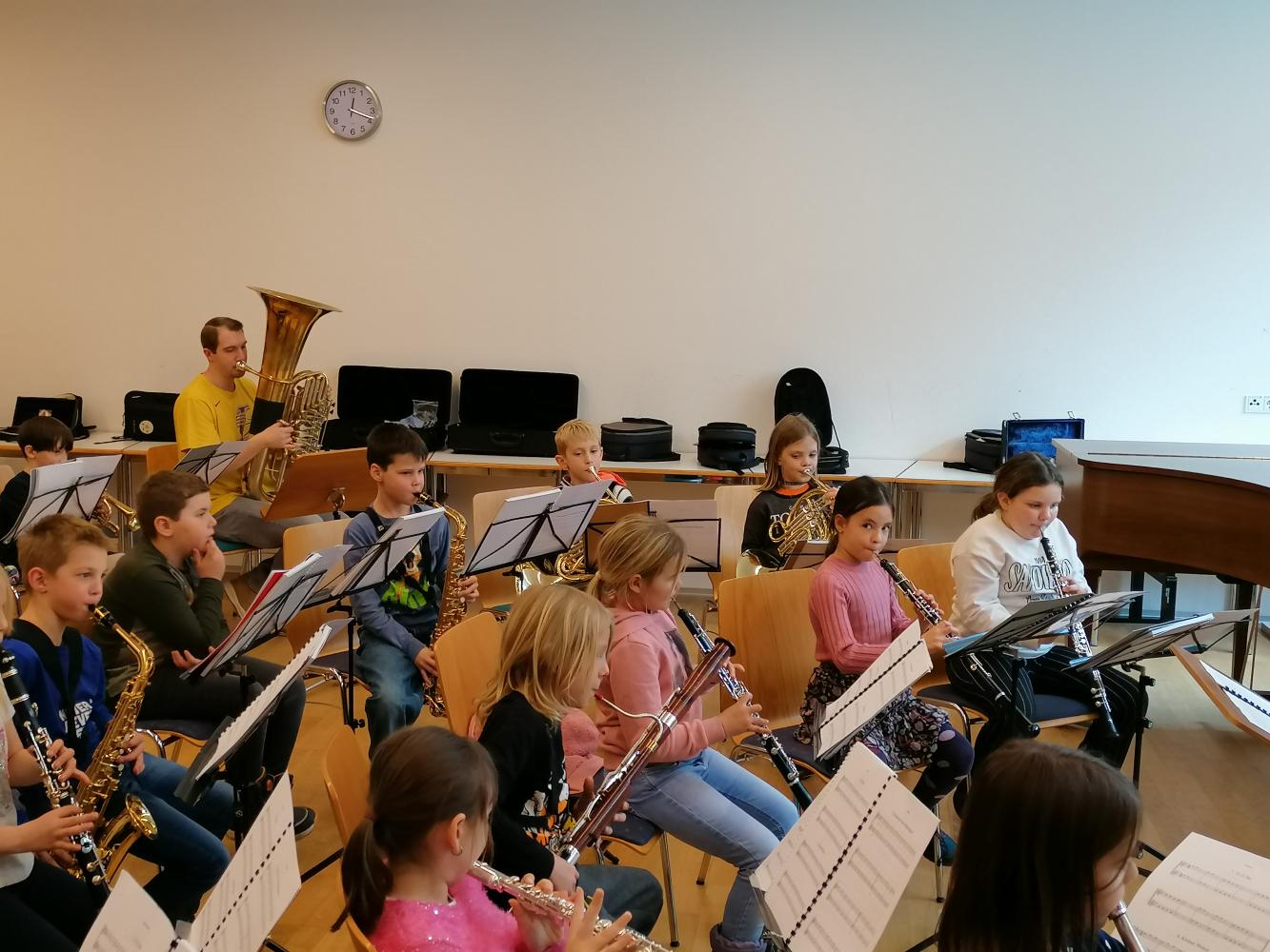 Übung macht den Meister und die Meisterin von Romed Suda 14. Mai 2024 bläserklasse Die Kinder proben mit großem Eifer und haben Spaß am gemeinsamen Musizieren. Manchmal braucht auch so manches Instrument Hilfe. Unsere beiden Musiklehrer Stephan und Stephan sind auch hier immer zur Stelle. Herzlichen Dank dafür!