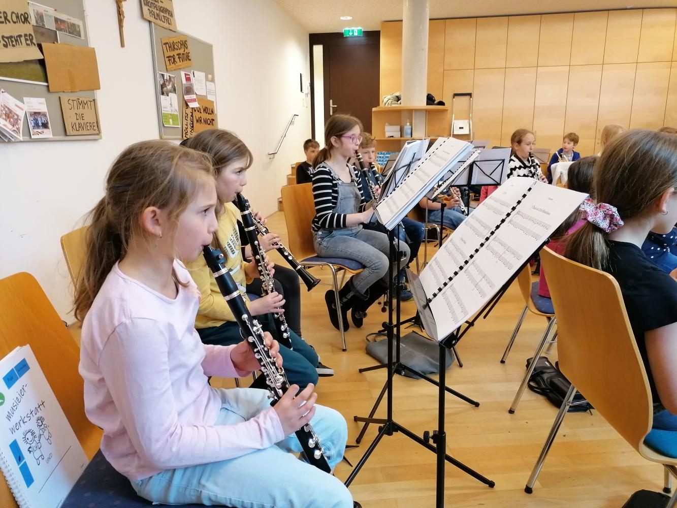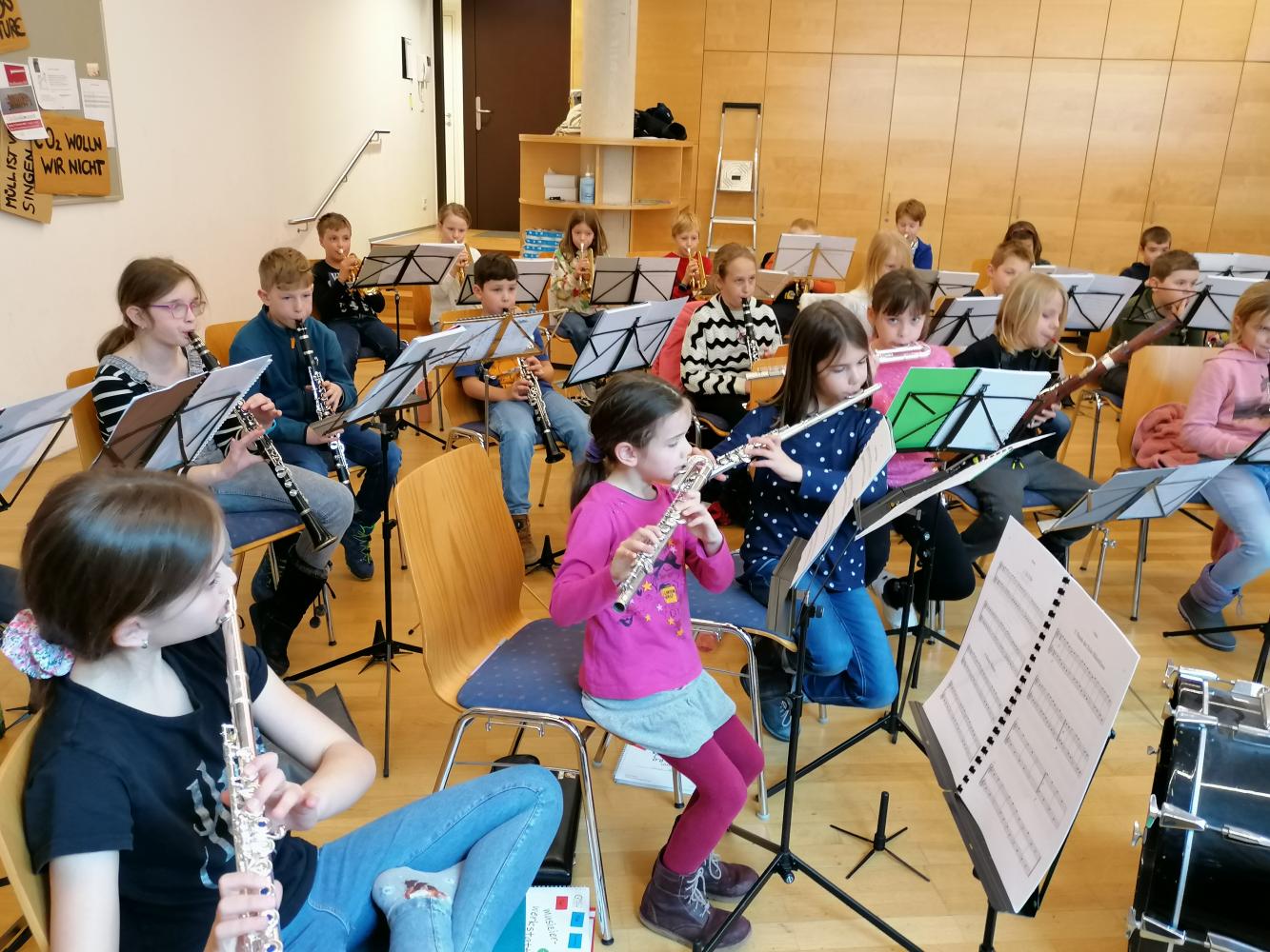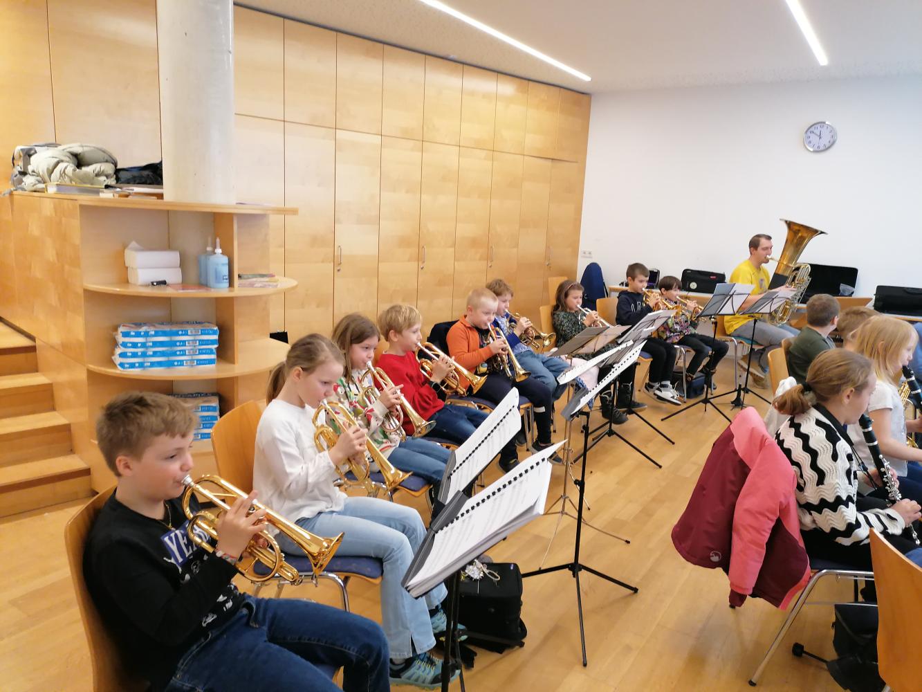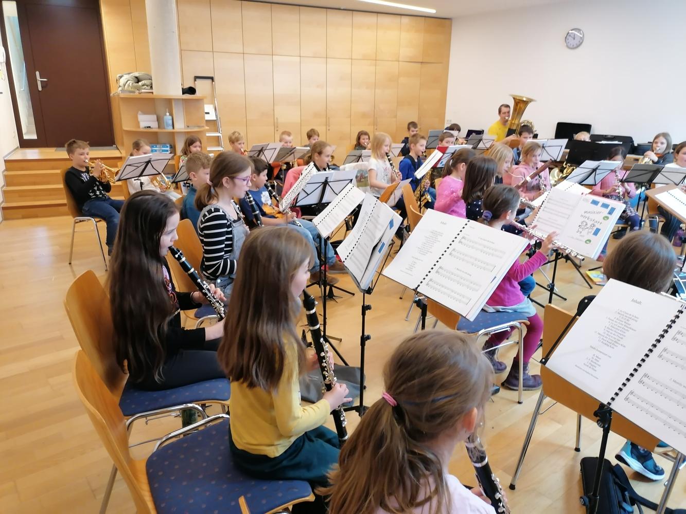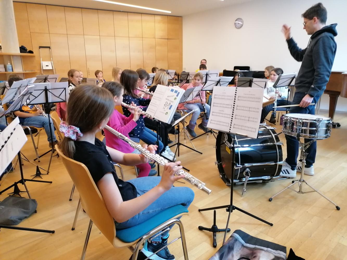 Übung macht den Meister und die Meisterin von Romed Suda 14. Mai 2024 bläserklasse Die Kinder proben mit großem Eifer und haben Spaß am gemeinsamen Musizieren. Manchmal braucht auch so manches Instrument Hilfe. Unsere beiden Musiklehrer Stephan und Stephan sind auch hier immer zur Stelle. Herzlichen Dank dafür!