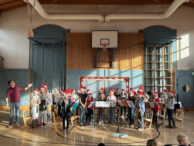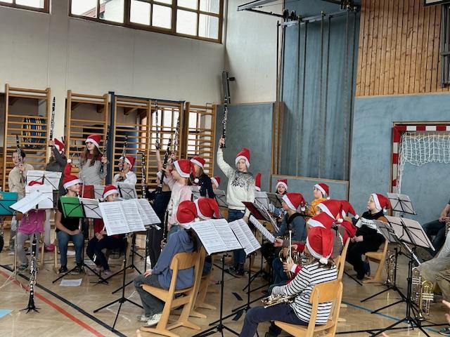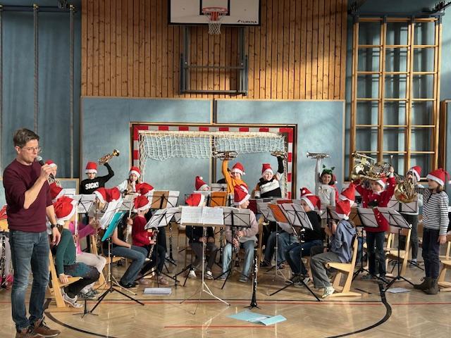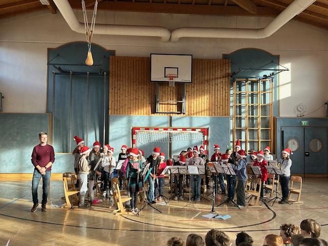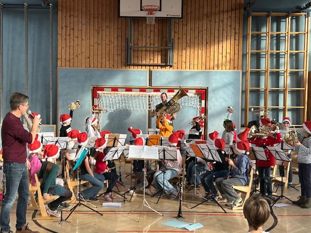 Am 18. Dezember 2024 musizierten die Kinder der Bläserklasse für die Schülerinnen, Schüler und Lehrpersonen unseres Schulclusters und luden zu einem kleinen Weihnachtskonzert in den großen Turnsaal. Dabei wurden auch die einzelnen Instrumente den Kindern vorgestellt. Für die tolle weihnachtliche Blasmusik gab es zum Dank großen Applaus von allen begeisterten Zuhörerinnen und Zuhörern.