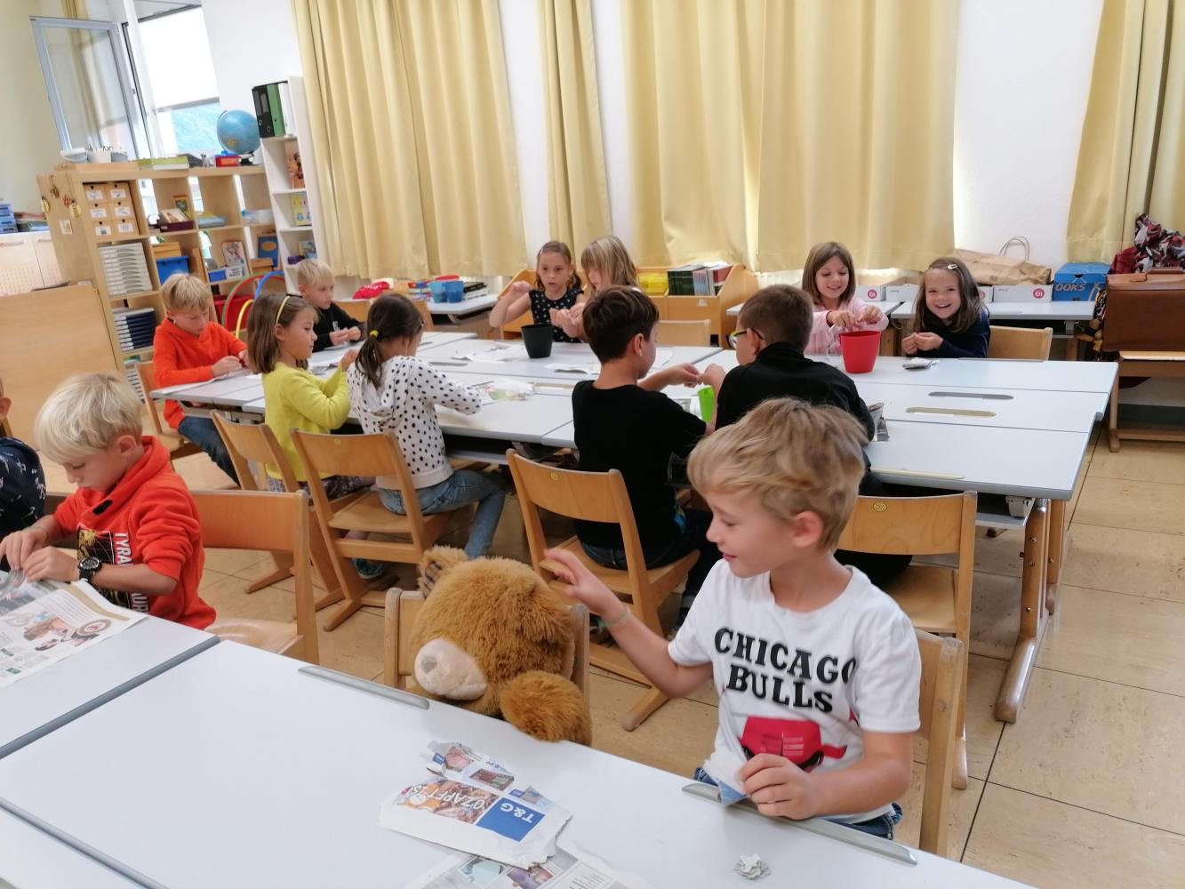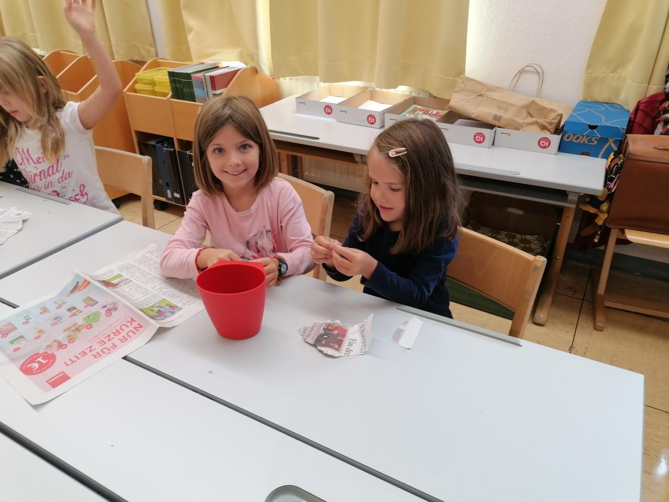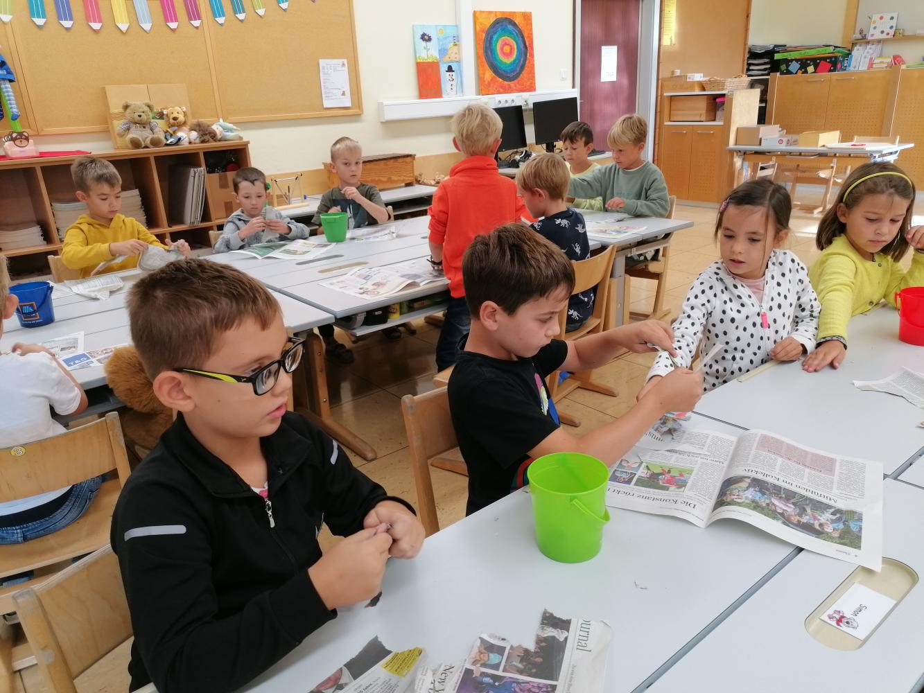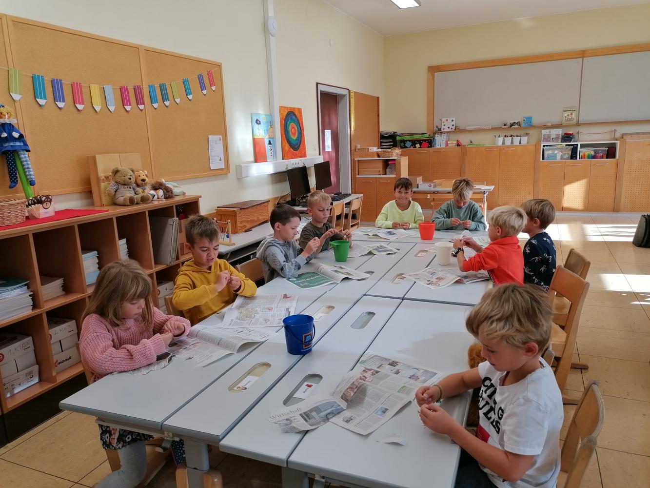 Wir üben unsere Fingerfertigkeit! von Romed Suda 25. Oktober 2022 4b Zeitungen zerreißen, Schnüre zu Schneckenhäusern drehen,...